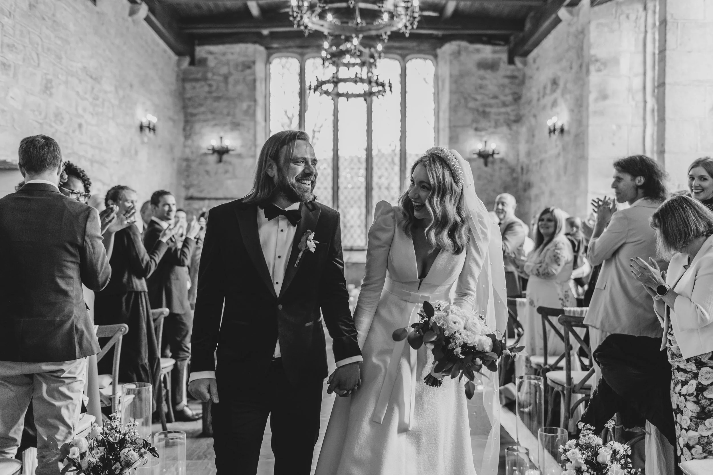 All smiles at the front of the aisle for the first look
